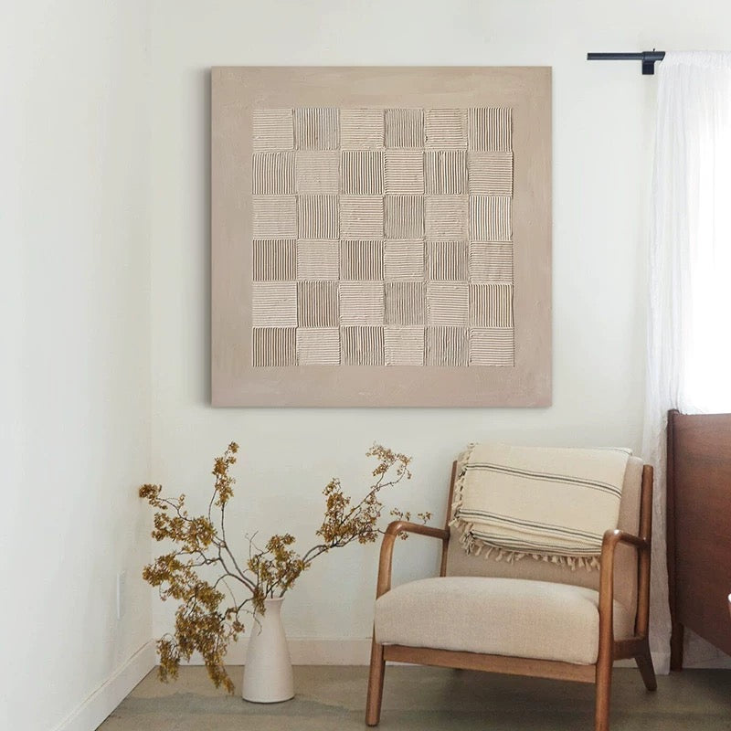 The Centeredness wall art is meticulously hand-painted with acrylics, showcasing intricate details that exemplify expert artistry. The carefully layered textures and precise brushwork create a compelling visual focal point, designed to enhance sophistication and balance in any space.