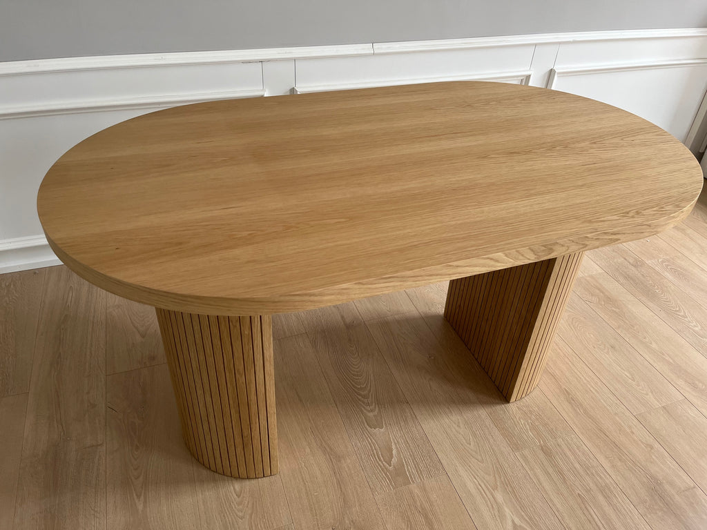 Material: Solid wood structure (eucalyptus wood) + Oakwood veneer + fluted MDF legs