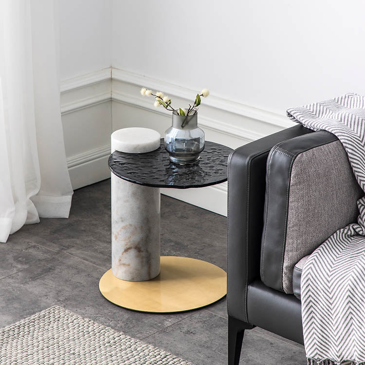 Structure of tall side table: Marble + Electroplated stainless steel base