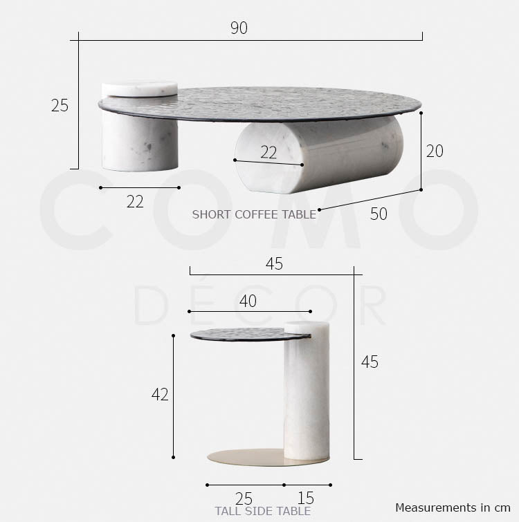 Structure of short coffee table: Marble