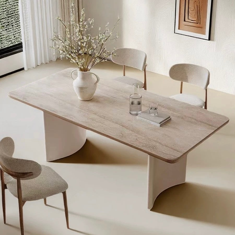 The Hazel sintered stone dining table combines engineered durability with refined aesthetics. Sintered stone offers exceptional resistance to scratches, stains, and heat, making it ideal for high-traffic dining spaces. Its non-porous surface resists moisture and bacteria, ensuring easy maintenance with minimal effort. The material's strength allows for thinner profiles without compromising stability, creating a sleek, contemporary silhouette. Perfect for modern homes seeking a sophisticated table that withstands daily use while maintaining its pristine appearance for years.