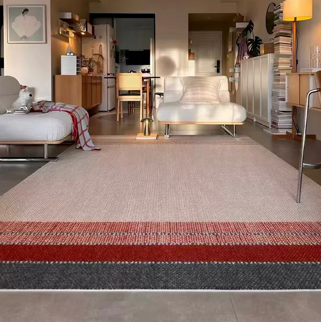 • Synthetic fibers help repel stains and moisture better, so spills and dirt are easier to manage compared to 100% wool rugs.