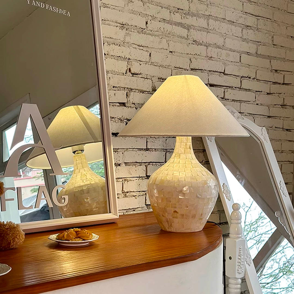 Material: Fabric lamp shade, metal structure