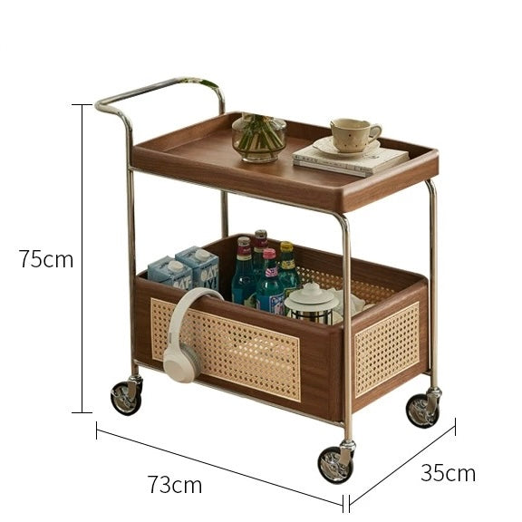 Material: Walnut wood venner, natural rattan piecing, stainless steel handle and structure