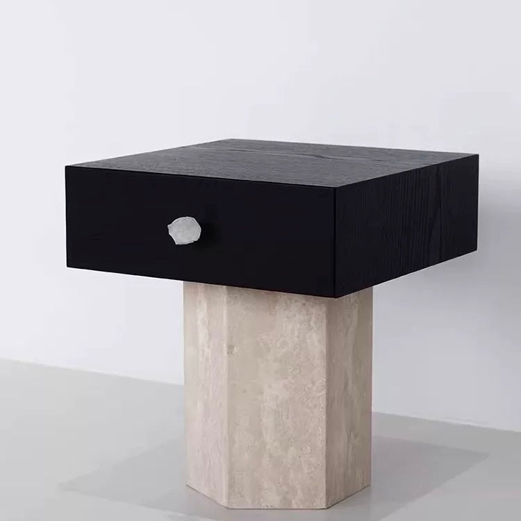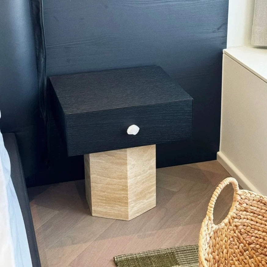 Material: Solid multi-layer wood with walnut wood veneer + travertine stand