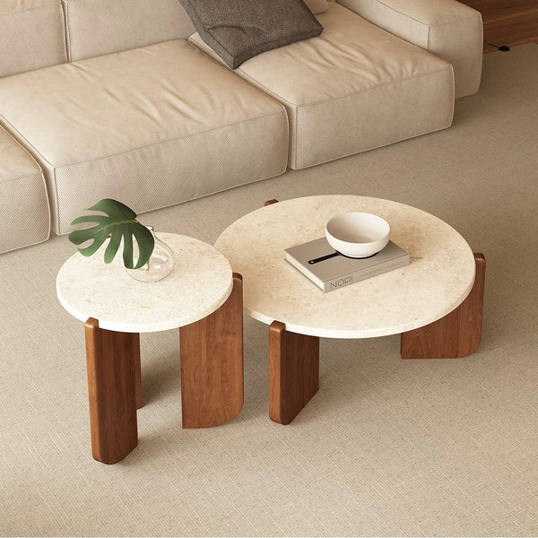 Ane travertine-look round coffee table