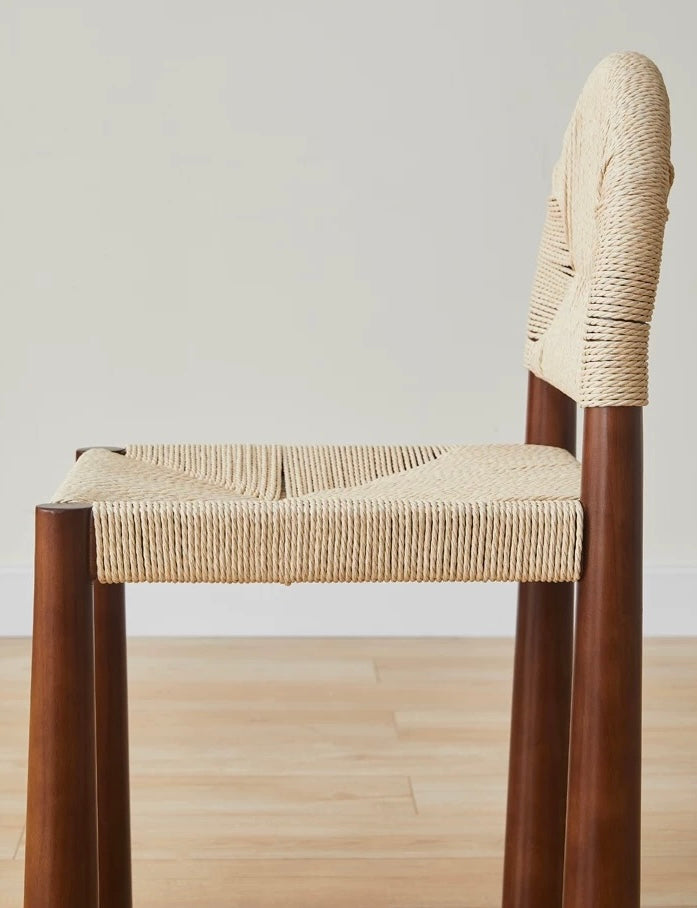 The Dan dining chair combines a robust rubber wood frame with expertly woven seating to deliver both durability and comfort. Its sturdy structure ensures long-lasting support, while the woven seat offers breathability and ergonomic relaxation. Ideal for sophisticated dining spaces, this chair blends craftsmanship with functional design for enduring style and reliability.