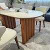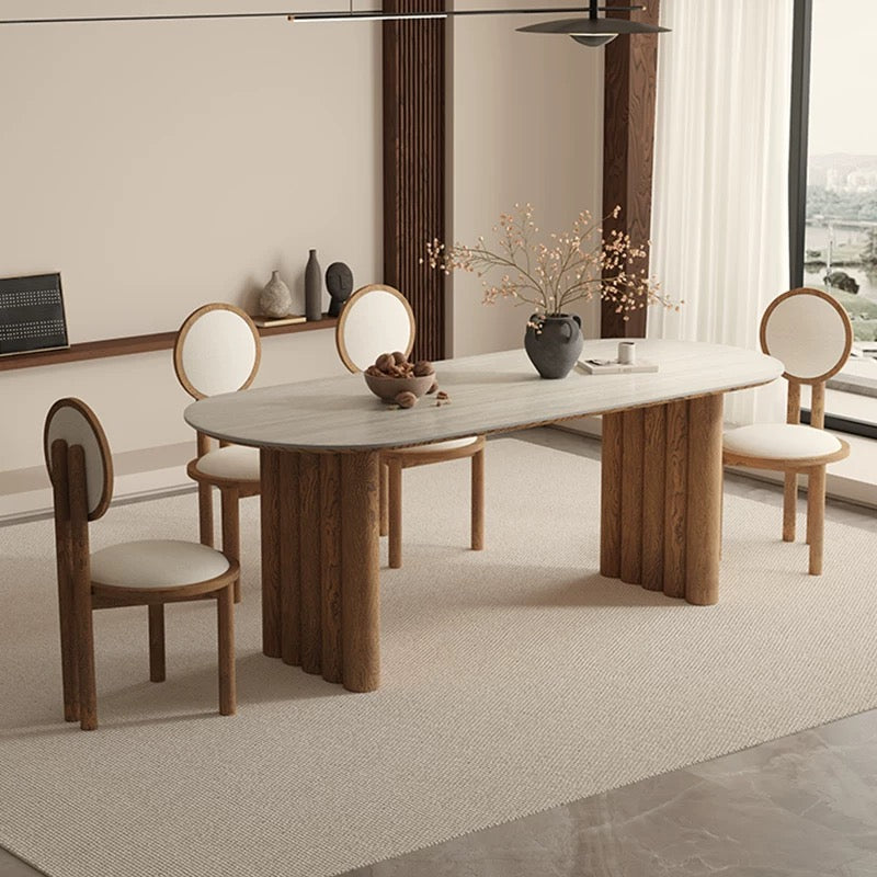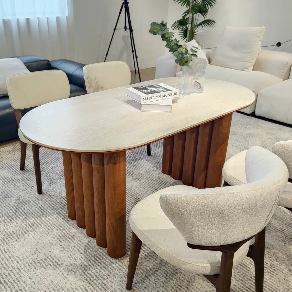 The Gisle sintered stone dining table features robust Roman legs, combining architectural elegance with exceptional stability. Its durable sintered stone surface offers superior resistance to heat, scratches, and stains, ensuring long-lasting beauty and functionality. Designed for sophisticated dining spaces, this table balances modern craftsmanship with timeless structural support to enhance any interior with both style and durability.