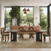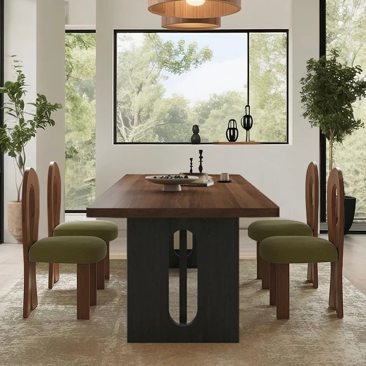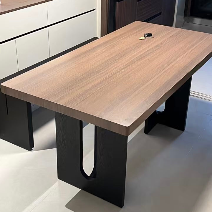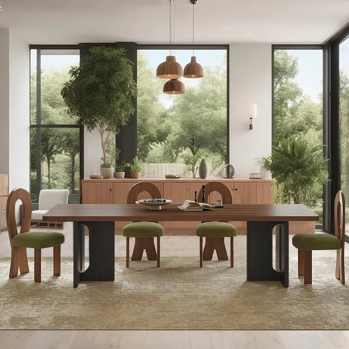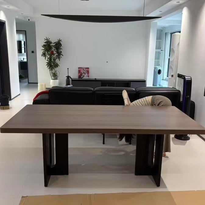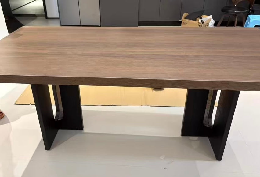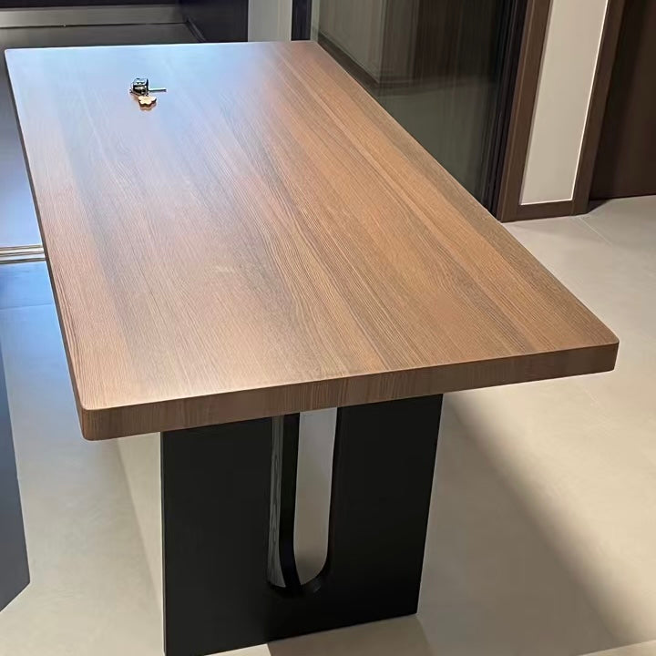 The Njal Sintered Stone Dining Table showcases a durable sintered stone surface crafted to emulate the rich, warm tones of walnut wood. This table offers a refined, maintenance-friendly centerpiece that enhances any dining environment with its walnut appearance and lasting performance.