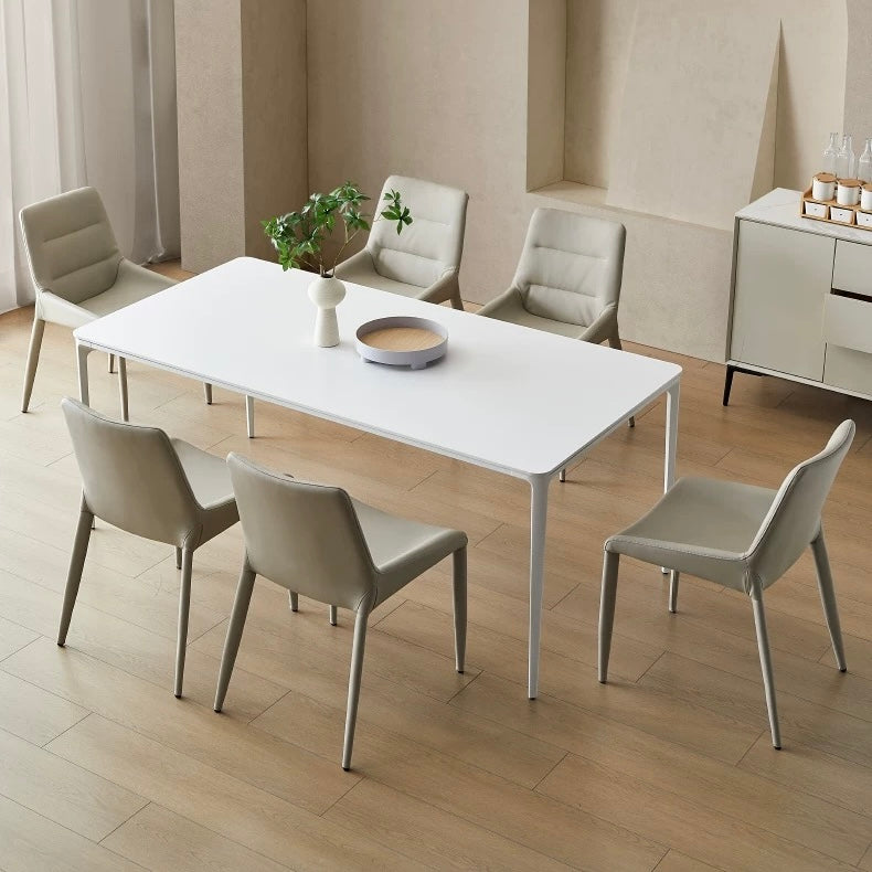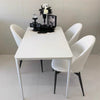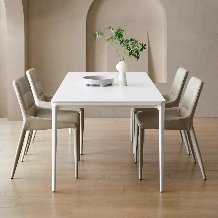 Crafted with precision, our Thyra Sintered Stone Dining Table boasts a durable sintered stone table top and sleek legs. Enjoy the benefits of a scratch-resistant and easy to clean surface, complemented by a modern design that elevates any dining space.