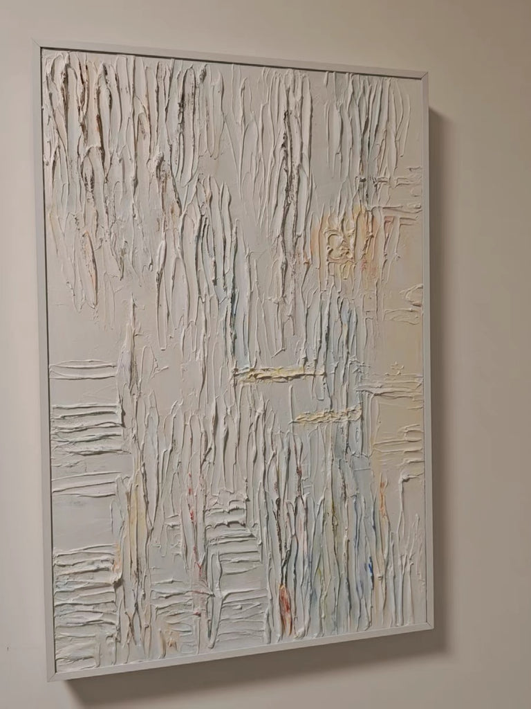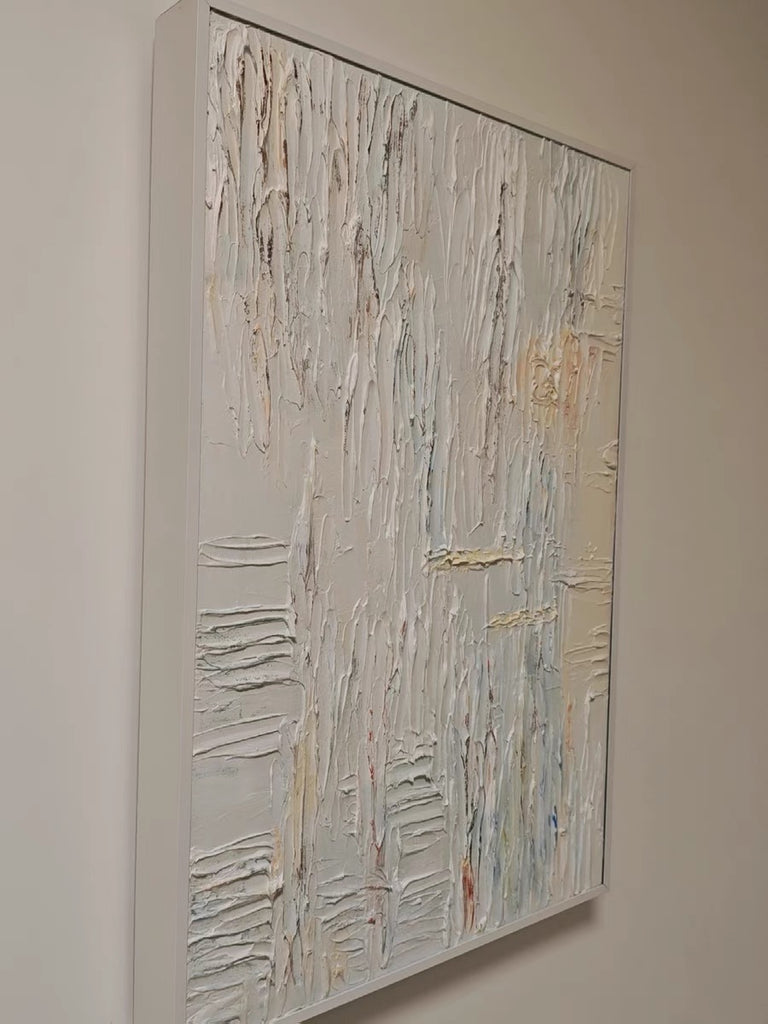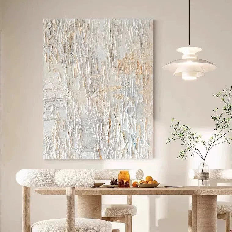 The Bodil wall art is meticulously hand-painted with acrylics, showcasing intricate details that exemplify expert artistry. The carefully layered textures and precise brushwork create a compelling visual focal point, designed to enhance sophistication and balance in any space.
