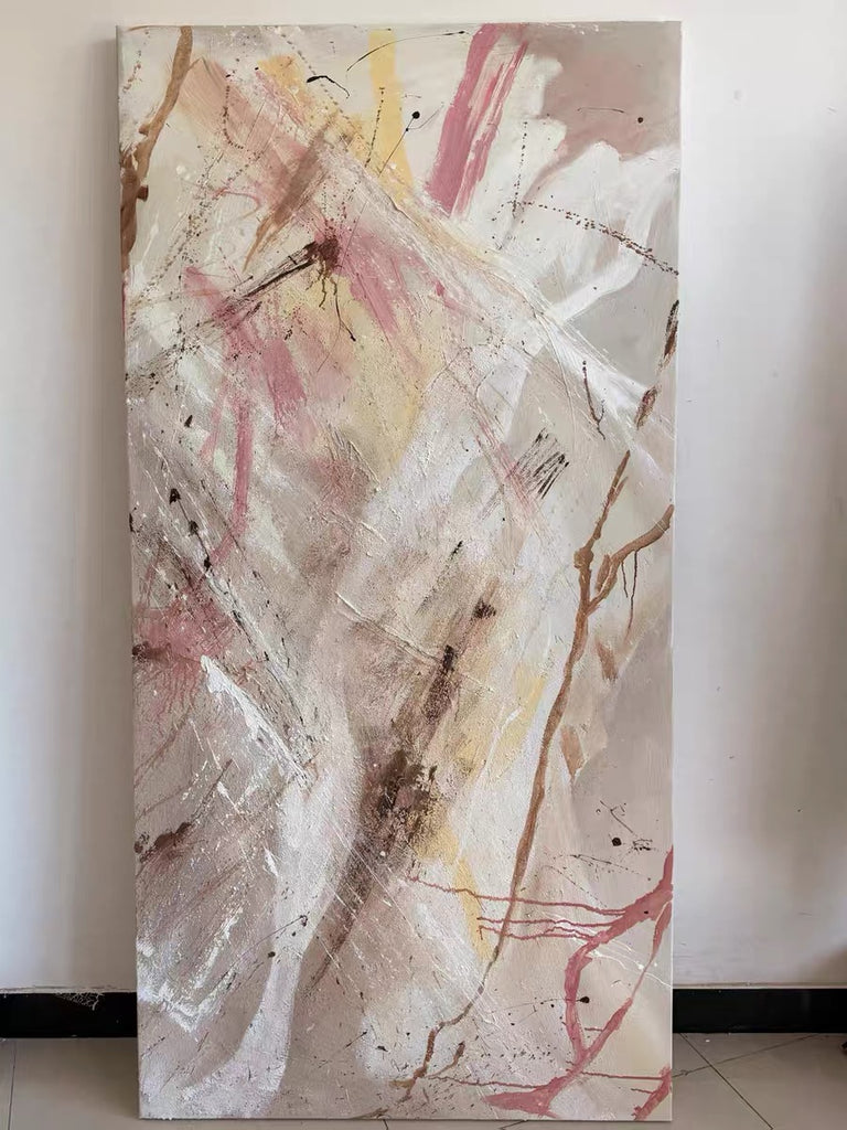 The Cathrine wall art is meticulously hand-painted with acrylics, showcasing intricate details that exemplify expert artistry. The carefully layered textures and precise brushwork create a compelling visual focal point, designed to enhance sophistication and balance in any space.