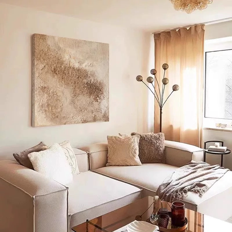 The Danni wall art is meticulously hand-painted with acrylics, showcasing intricate details that exemplify expert artistry. The carefully layered textures and precise brushwork create a compelling visual focal point, designed to enhance sophistication and balance in any space.